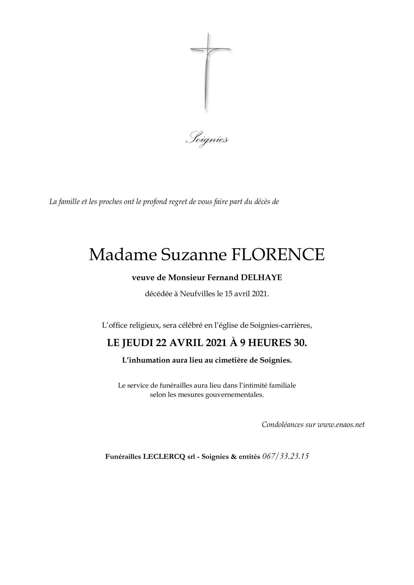 Fallecida en Neufvilles (7063, Bélgica) el jueves, 15 de abril de 2021 a la edad de 98 años