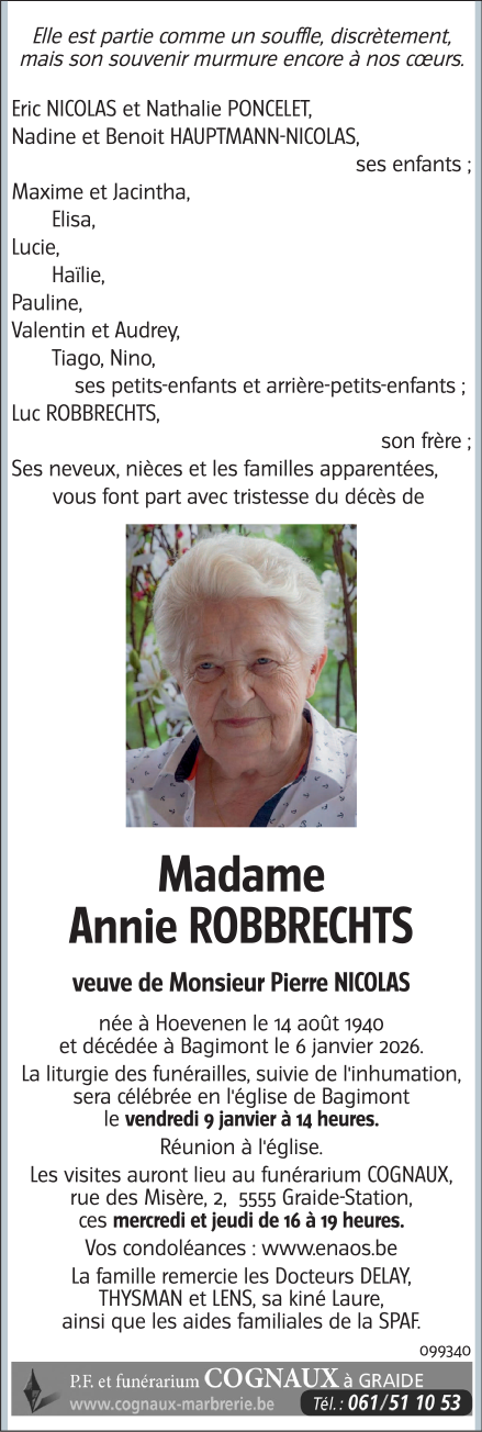 Died in Bagimont (5550, Belgium) on 06 January 2026 at the age of 85 years