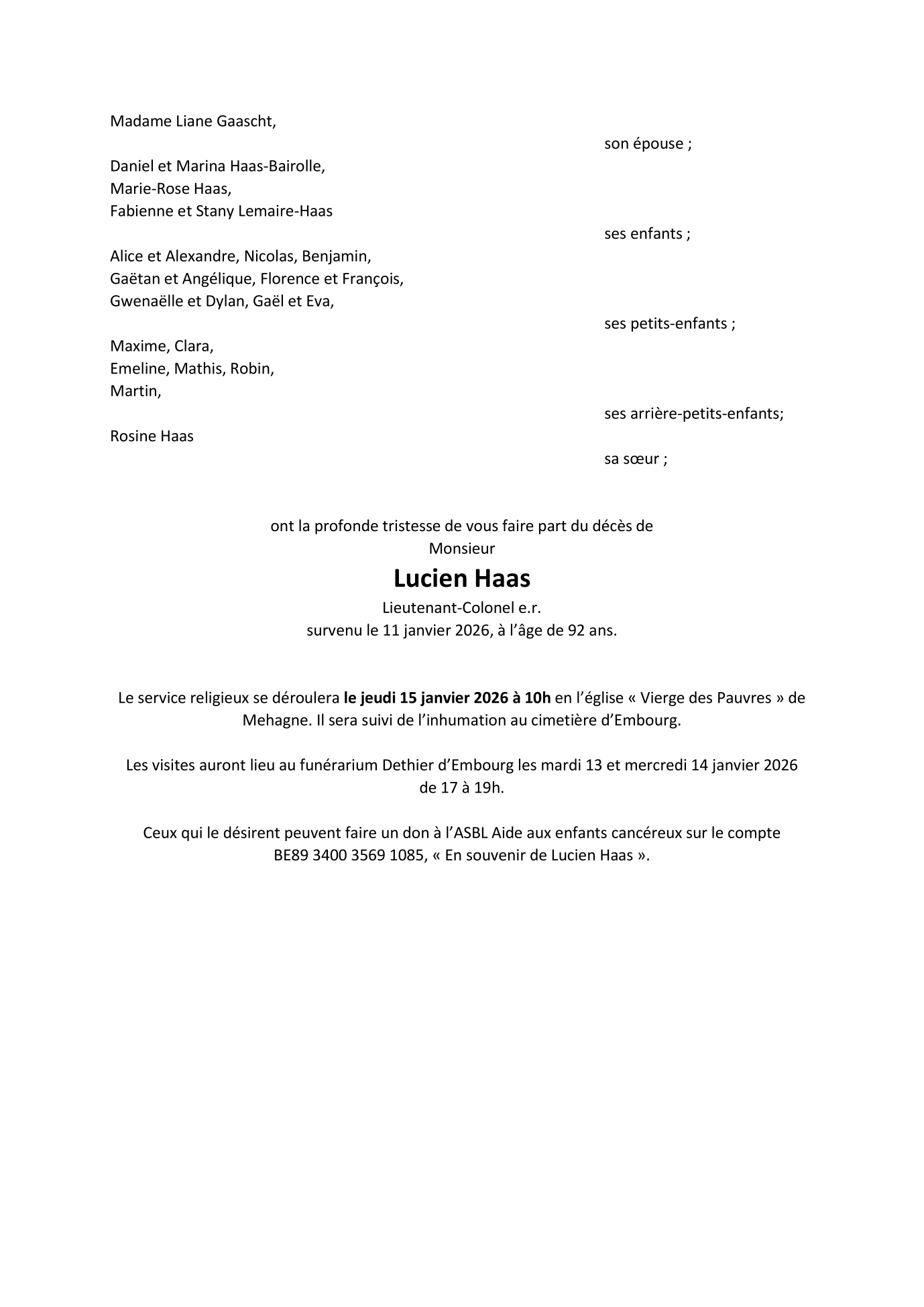 Died in Embourg (4053, Belgium) on 11 January 2026 at the age of 92 years