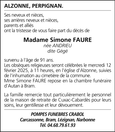 Madame Simone FAURE née ANRIEU