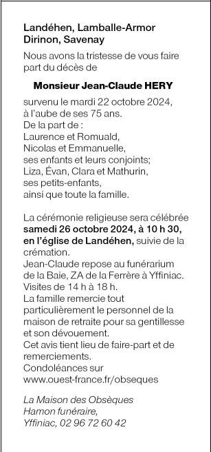 Overleden te Saint-Brieuc (22000) op dinsdag 22 oktober 2024 op 74-jarige leeftijd