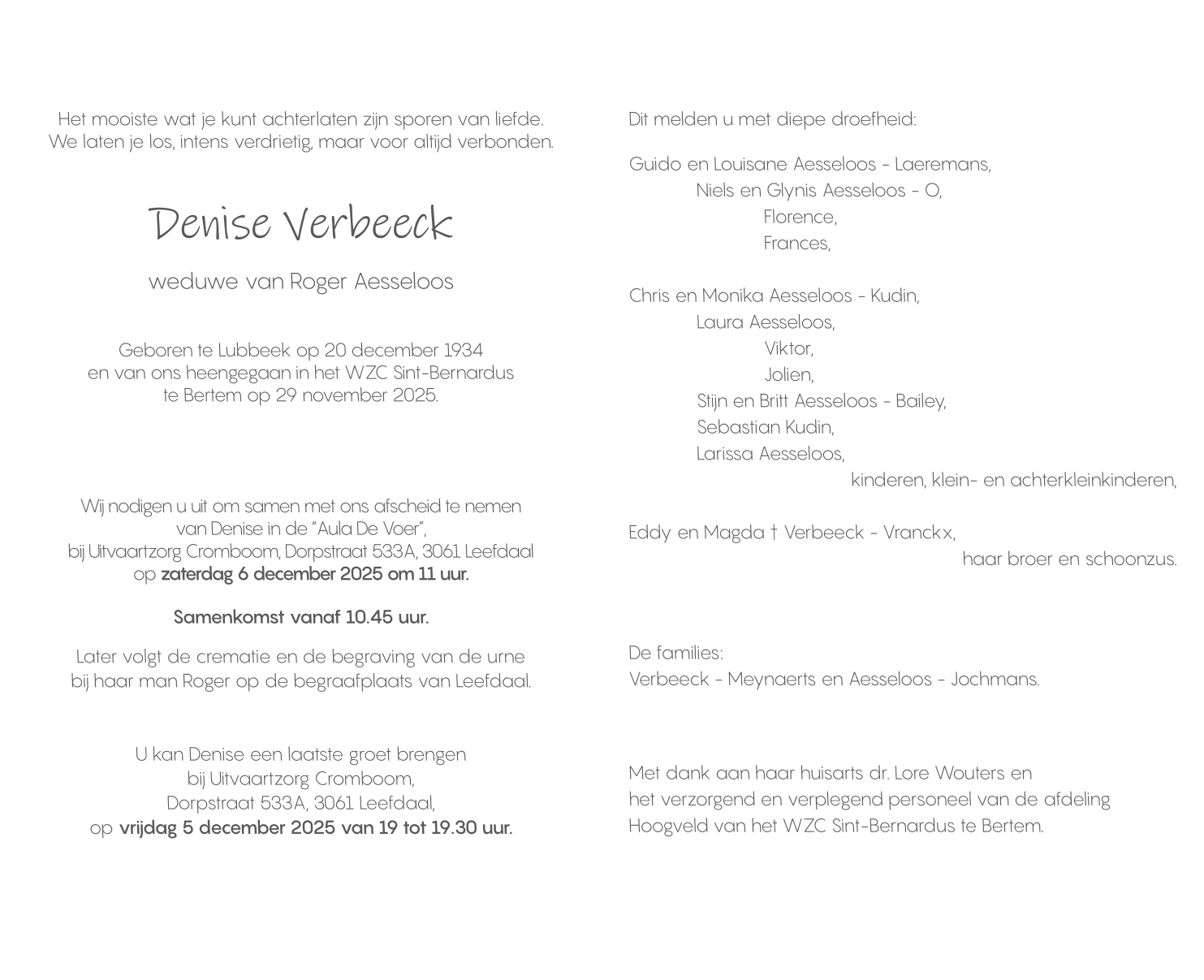 Décédée à Bertem (3060, Belgique) le samedi 29 novembre 2025 à l'âge de 90 ans