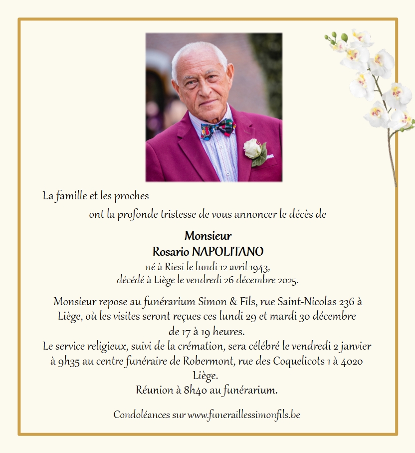 Décédé à Liège (4000, Belgique) le vendredi 26 décembre 2025 à l'âge de 82 ans