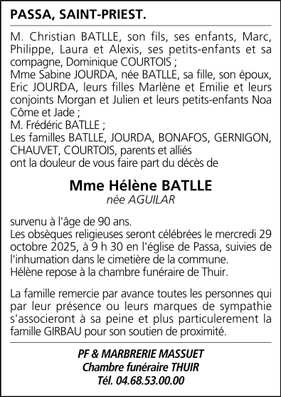 Died in Passa (66300) on 23 October 2025 at the age of 90 years