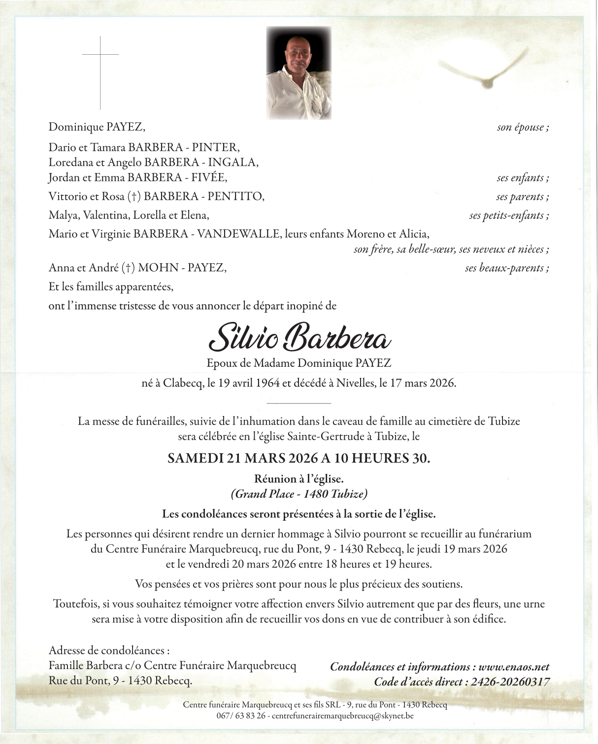 Décédé à Nivelles (1400, Belgique) le mardi 17 mars 2026 à l'âge de 61 ans