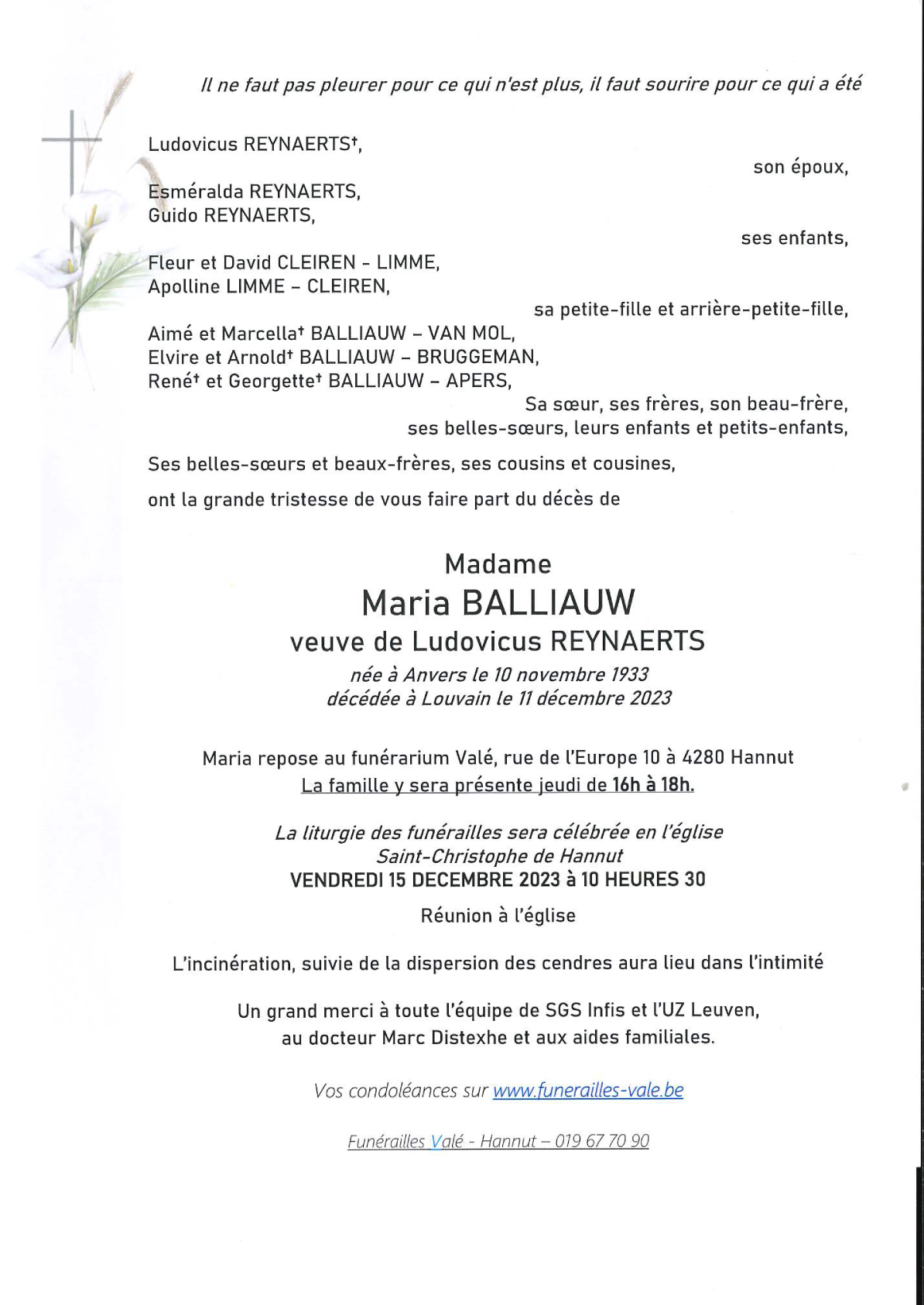 Décédée à Leuven (3000, Belgique) le lundi 11 décembre 2023 à l'âge de 90 ans