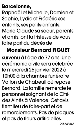 Décédé à Valence (26000) le samedi 22 janvier 2022 à l'âge de 77 ans