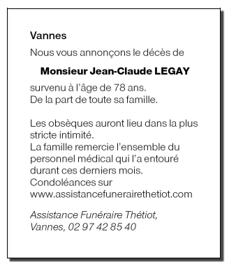 Décédé à Vannes (56000) le jeudi 25 mai 2023 à l'âge de 78 ans