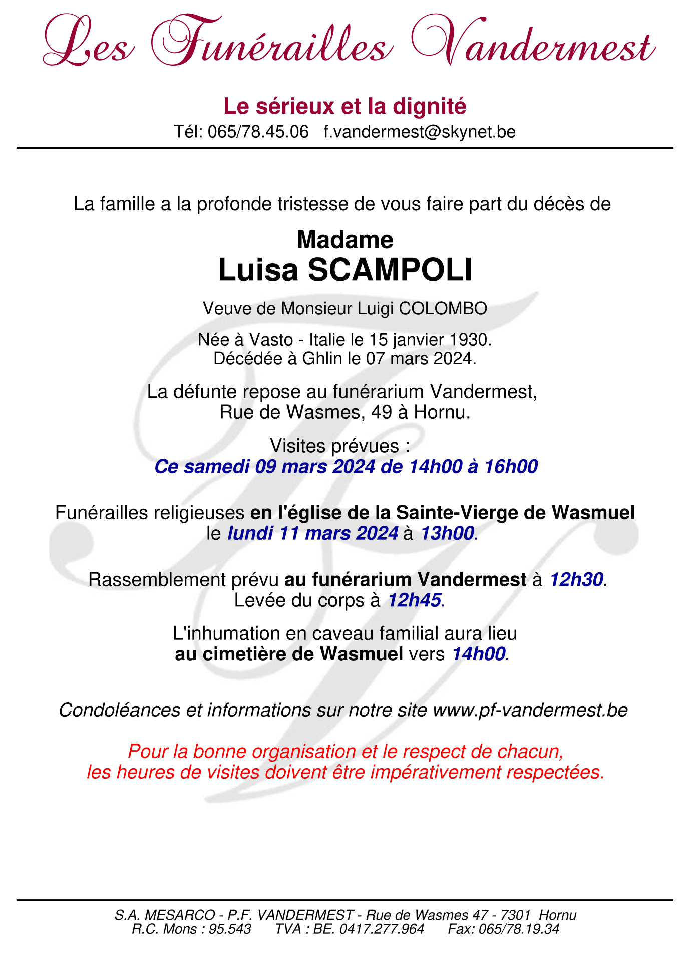 Fallecida en Ghlin (7011, Bélgica) el jueves, 7 de marzo de 2024 a la edad de 94 años