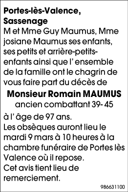 Veuf de Madame Simone MAUMUS
