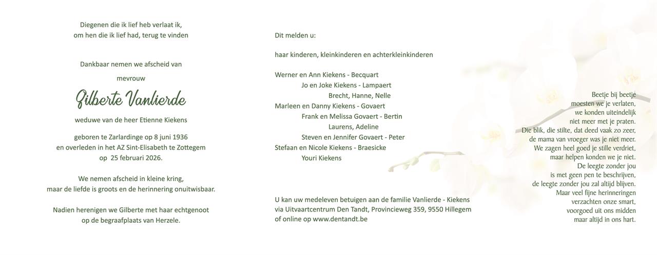Died in Zottegem (9620, Belgium) on 25 February 2026 at the age of 89 years