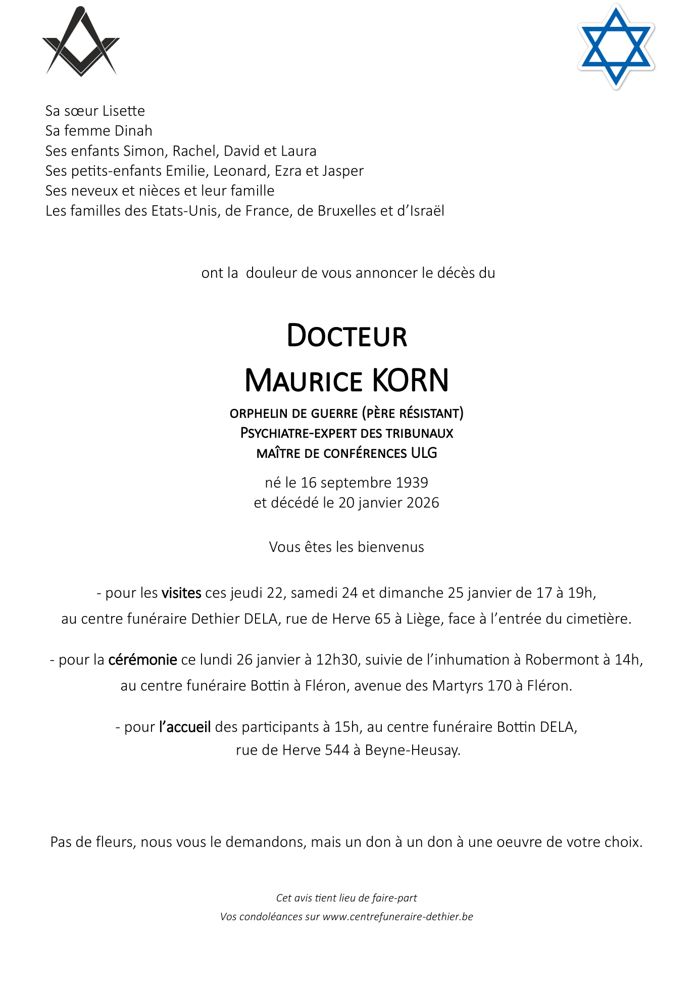 Décédé à Liège (4000, Belgique) le mardi 20 janvier 2026 à l'âge de 86 ans