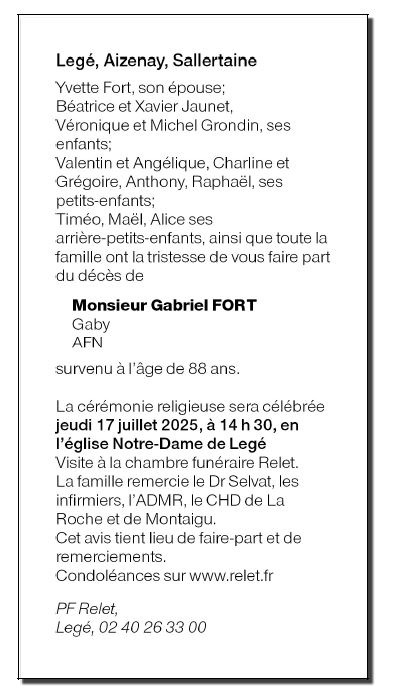 Fallecido en Montaigu (85600) el martes, 15 de julio de 2025 a la edad de 88 años