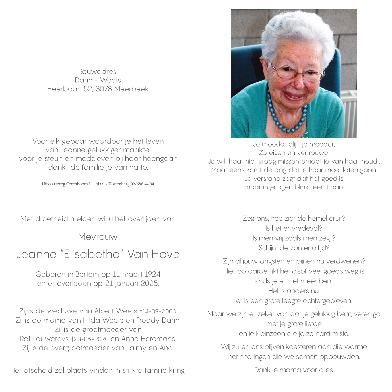 Mevrouw Jeanne Van hove