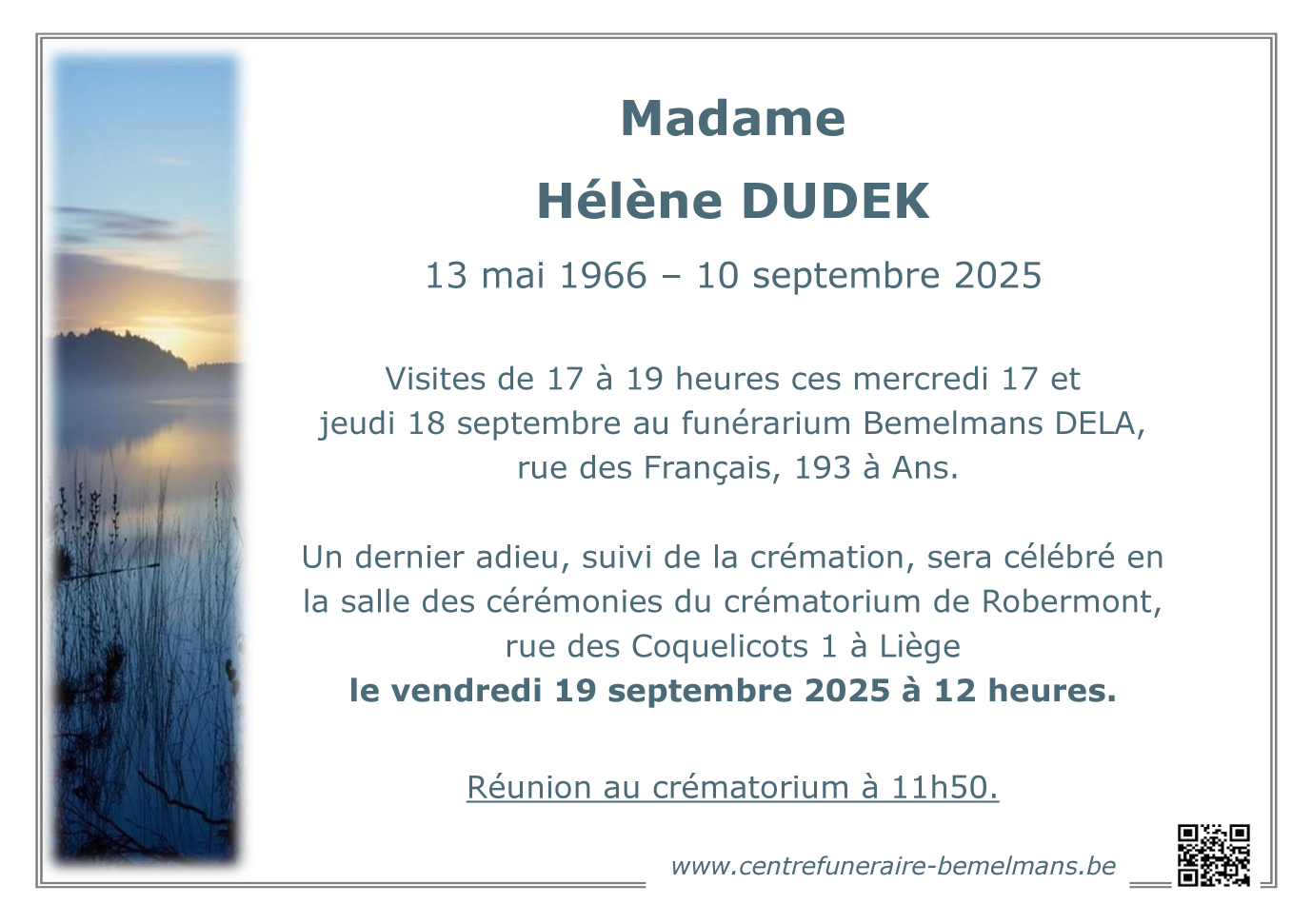 Fallecida en Bressoux (4020, Bélgica) el jueves, 11 de septiembre de 2025 a la edad de 59 años