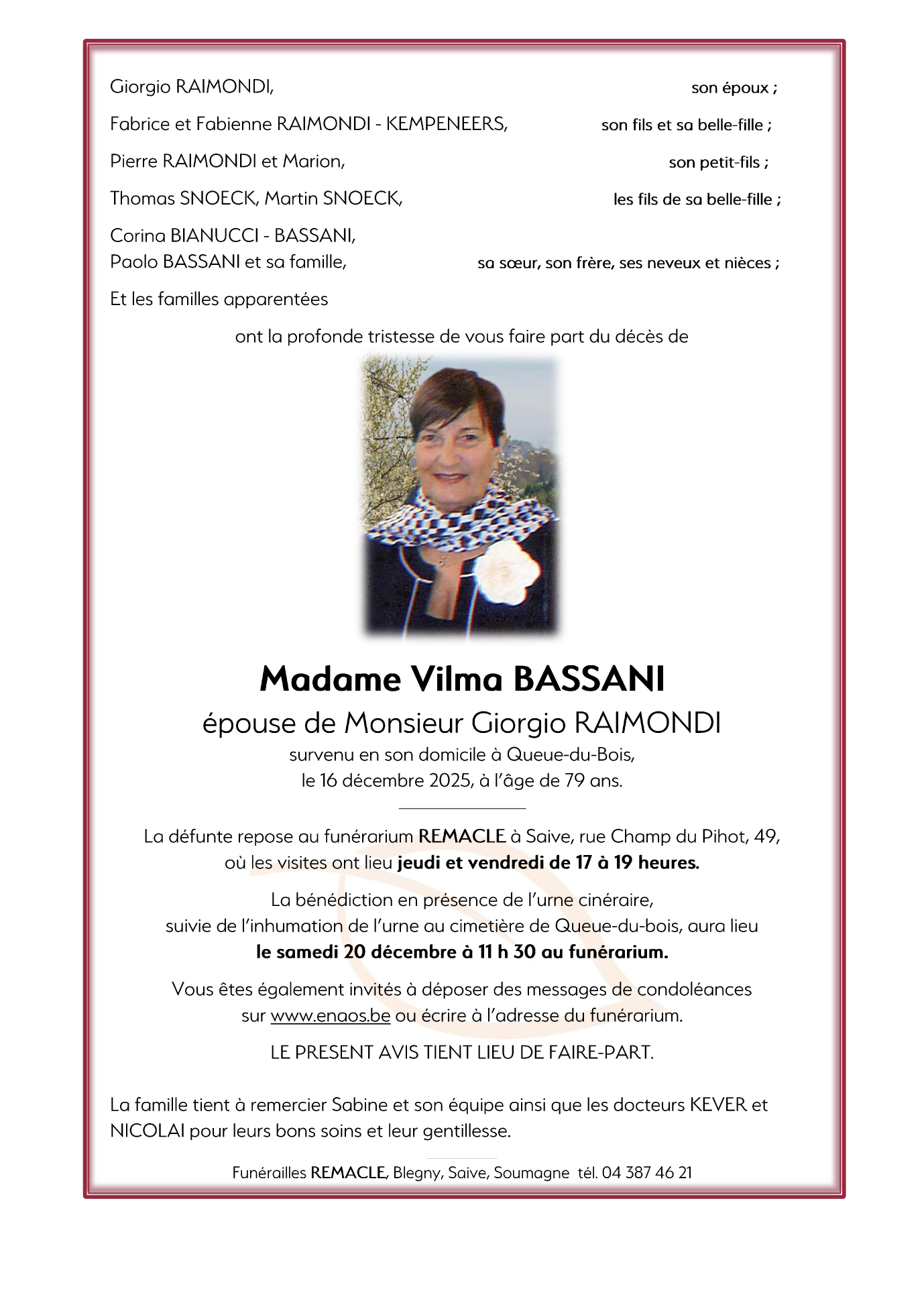 Died in Queue-du-Bois (4610, Belgium) on 16 December 2025 at the age of 79 years
