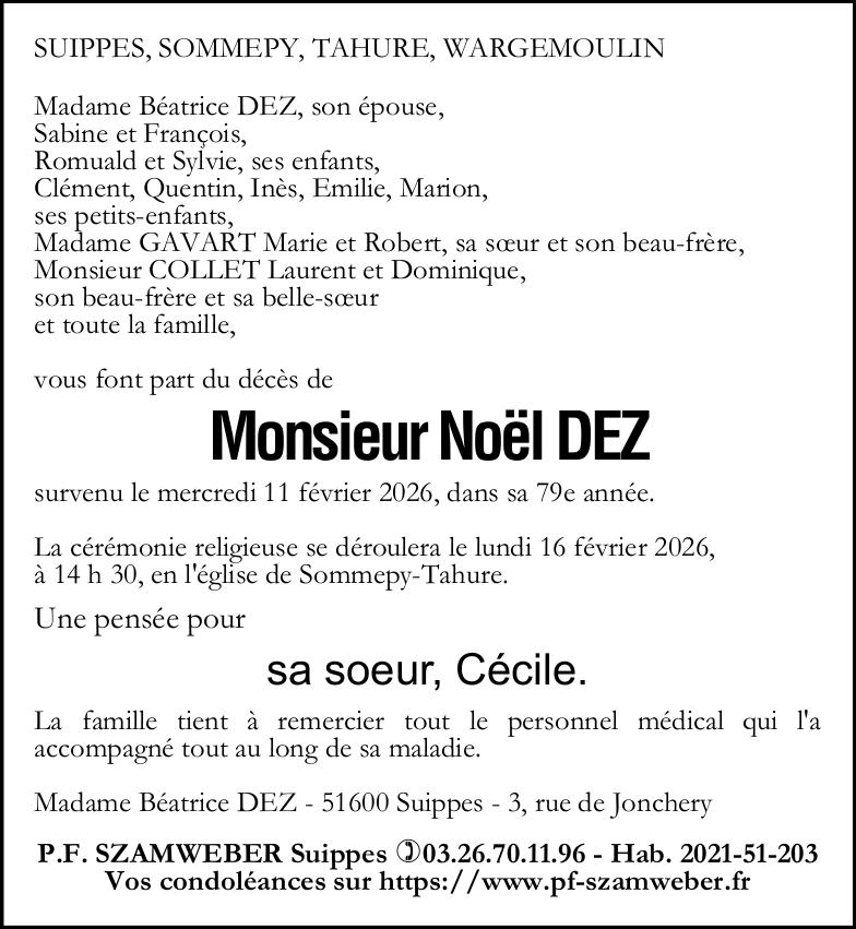 Décédé à Châlons-en-Champagne (51000) le mercredi 11 février 2026 à l'âge de 78 ans