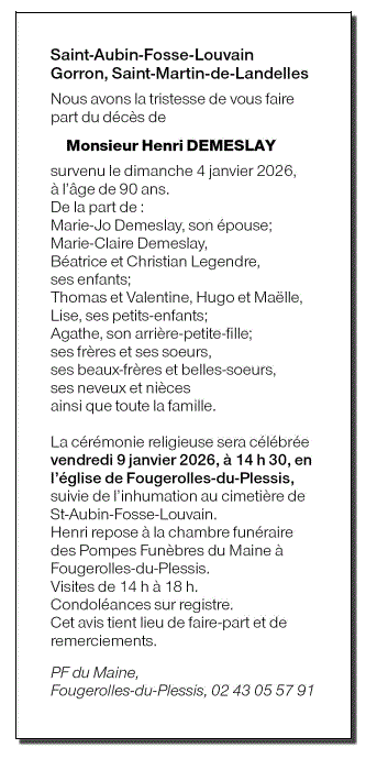 Annonce nécrologique de Monsieur Henri DEMESLAY