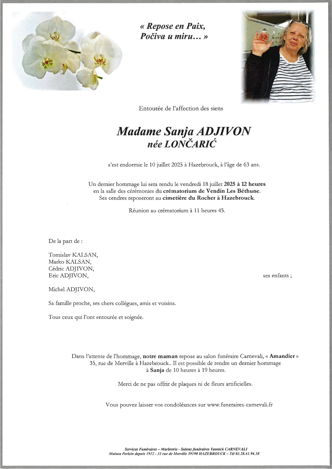Décédée à Hazebrouck (59190) le jeudi 10 juillet 2025 à l'âge de 63 ans
