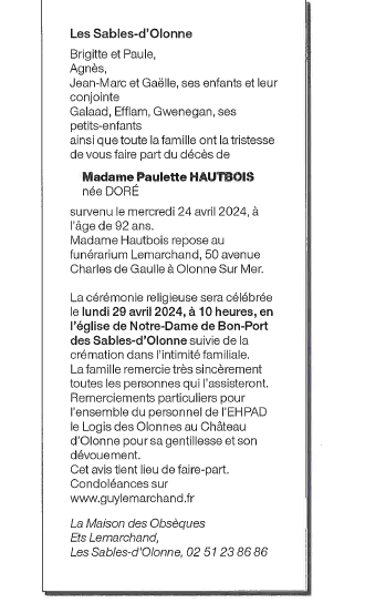 Madame Paulette HAUTBOIS née DORÉ
