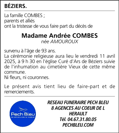 Overleden te Béziers (34500) op zondag 6 april 2025 op 93-jarige leeftijd