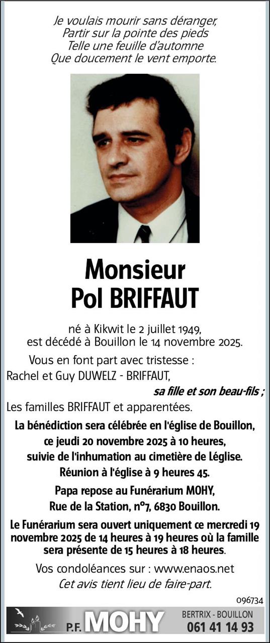 Overleden te Bouillon (6830, België) op vrijdag 14 november 2025 op 76-jarige leeftijd