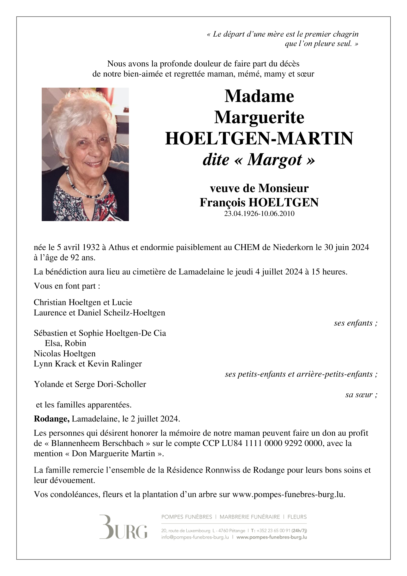 Madame Marguerite HOELTGEN-MARTIN