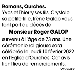 Overleden te Romans-sur-Isère (26100) op zaterdag 5 februari 2022 op 73-jarige leeftijd