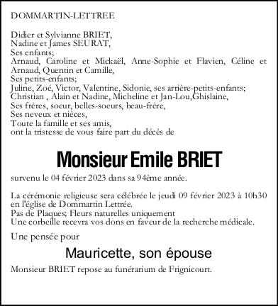 Died in Loisy-sur-Marne (51300) on 04 February 2023 at the age of 93 years