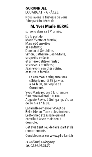 Weduwnaar van MADAME GERMAINE HERVÉ
