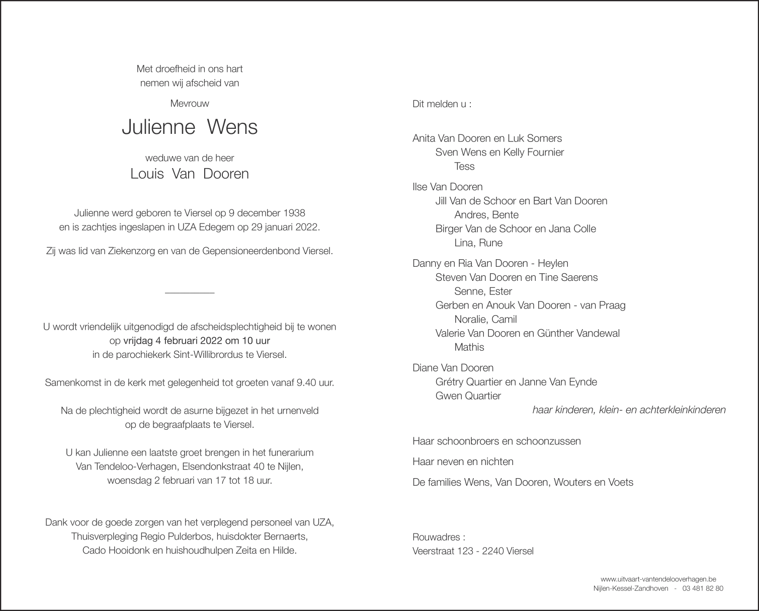Fallecida en Edegem (2650, Bélgica) el sábado, 29 de enero de 2022 a la edad de 83 años