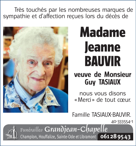 Overleden te Libramont (6800, België) op maandag 24 februari 2020 op 96-jarige leeftijd