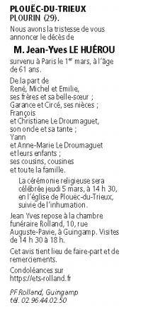 Né à Tréguier (22220) le lundi 28 avril 1958