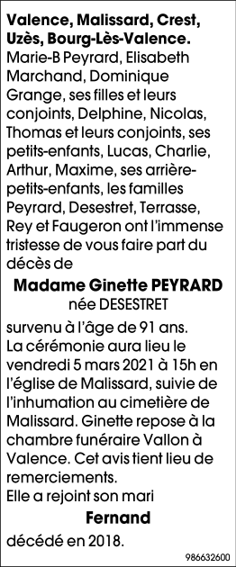 Widow of Monsieur Fernand PEYRARD