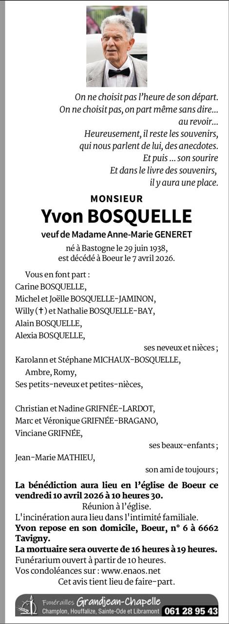 Died in Boeur (6662, Belgium) on 07 April 2026 at the age of 87 years