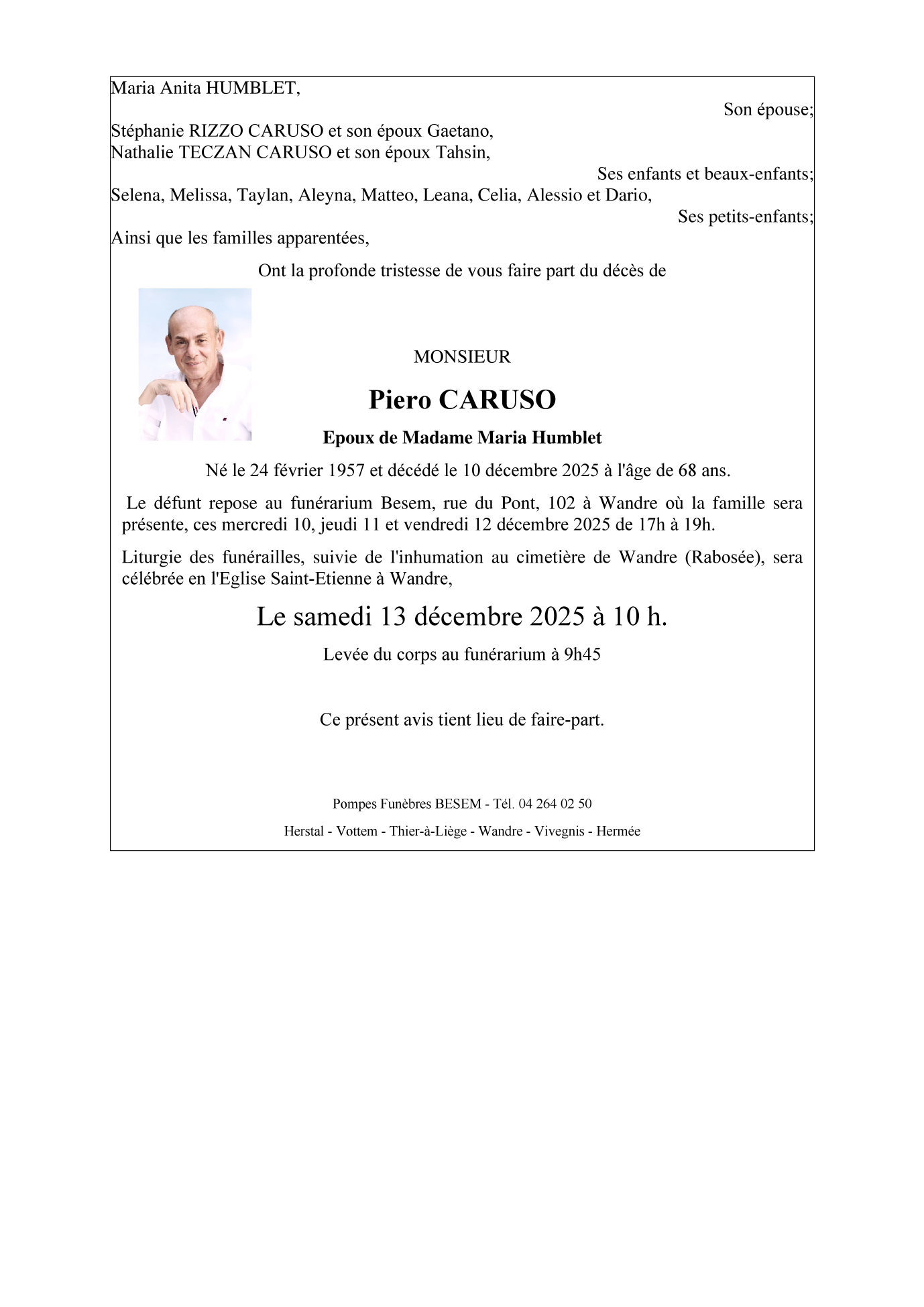 Died in Liège (4000, Belgium) on 10 December 2025 at the age of 68 years