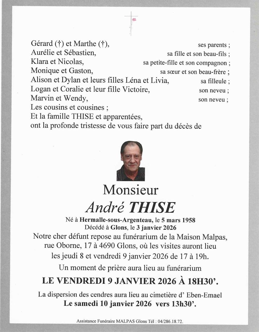 Décédé à Glons (4690, Belgique) le samedi 3 janvier 2026 à l'âge de 67 ans