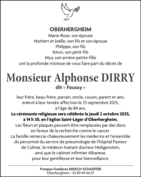Died in Colmar (68000) on 25 September 2025 at the age of 84 years
