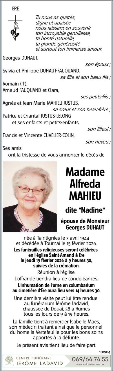 Madame Alfreda Mahieu