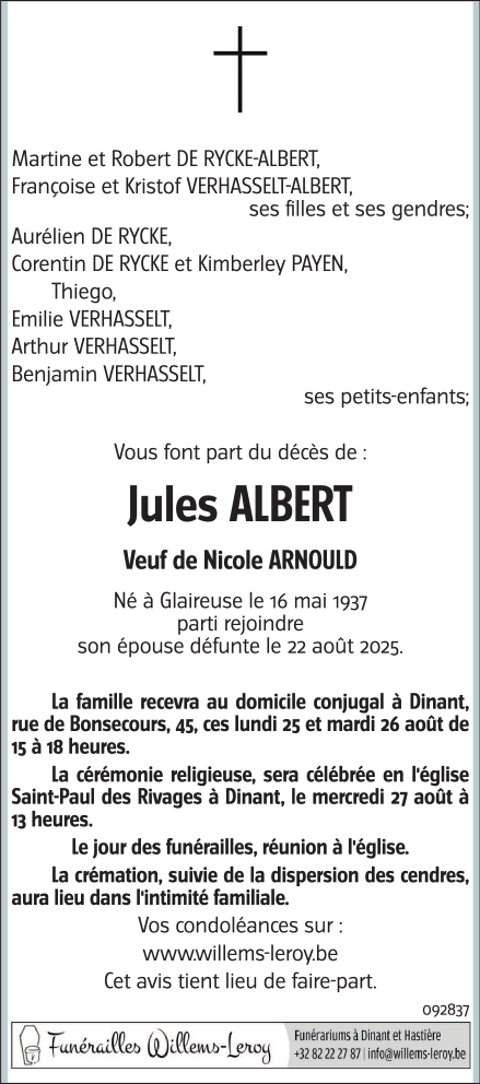 Décédé à Dinant (5500, Belgique) le vendredi 22 août 2025 à l'âge de 88 ans