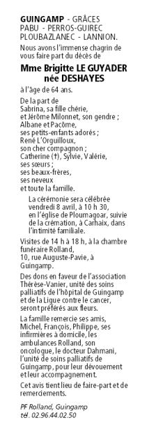 Madame Brigitte LE GUYADER née DESHAYES