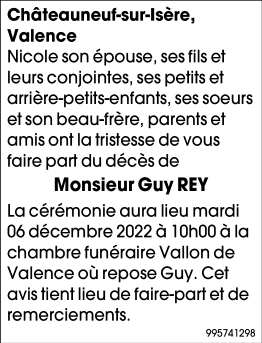 Fallecido en Valence (26000) el jueves, 1 de diciembre de 2022 a la edad de 87 años