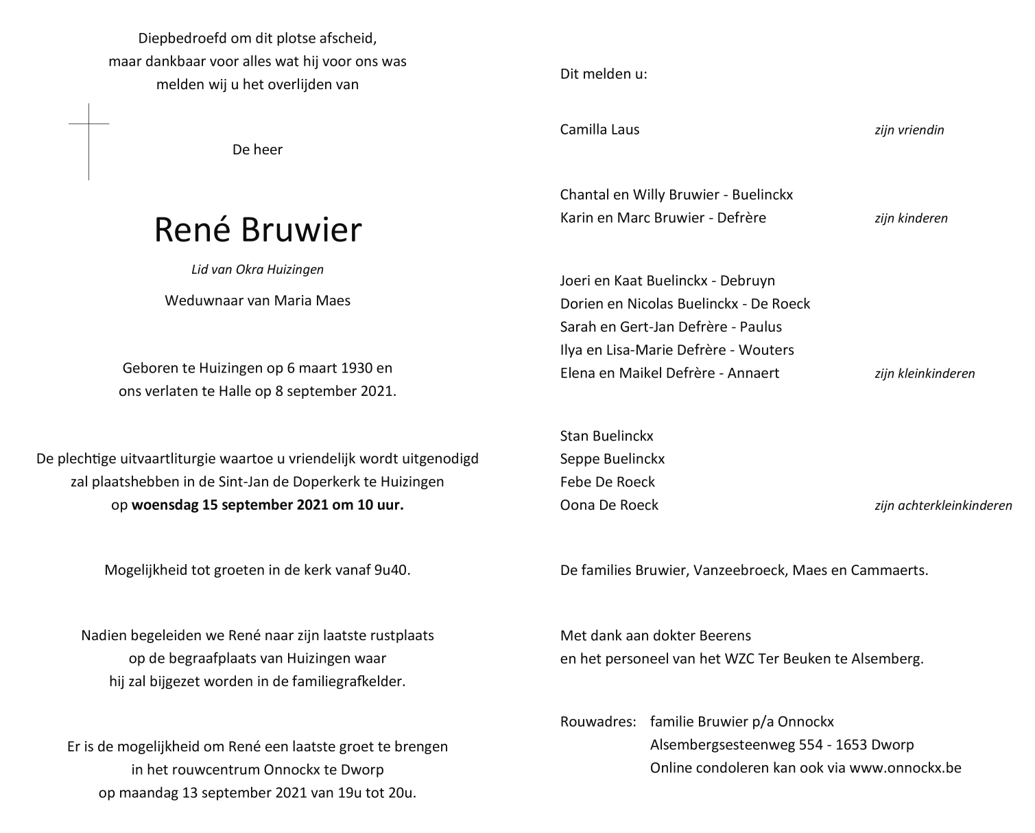 Fallecido en Halle (1500, Bélgica) el miércoles, 8 de septiembre de 2021 a la edad de 91 años
