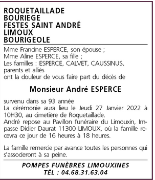 Décédé à Carcassonne (11000) le mardi 25 janvier 2022 à l'âge de 92 ans
