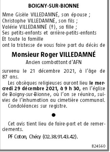 Died in Lamotte-Beuvron (41600) on 21 December 2021 at the age of 87 years