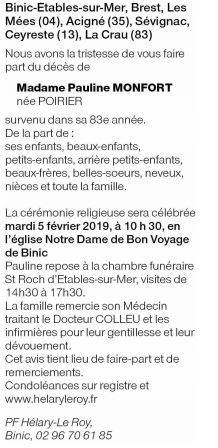 Madame Pauline MONFORT née POIRIER