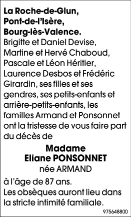 Madame Eliane Ponsonnet née ARMAND