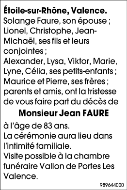 Overleden te Valence (26000) op vrijdag 30 april 2021 op 83-jarige leeftijd