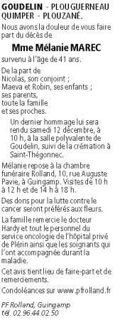 Décédée à Plérin (22190) le mardi 8 décembre 2020 à l'âge de 41 ans