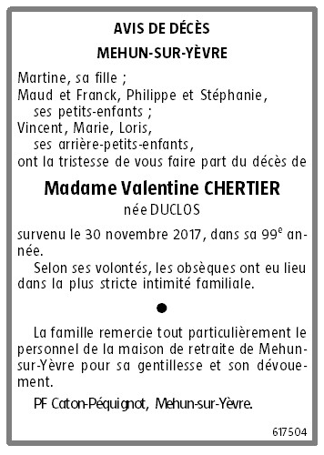 Died in Mehun-sur-Yèvre (18500) on 30 November 2017 at the age of 98 years